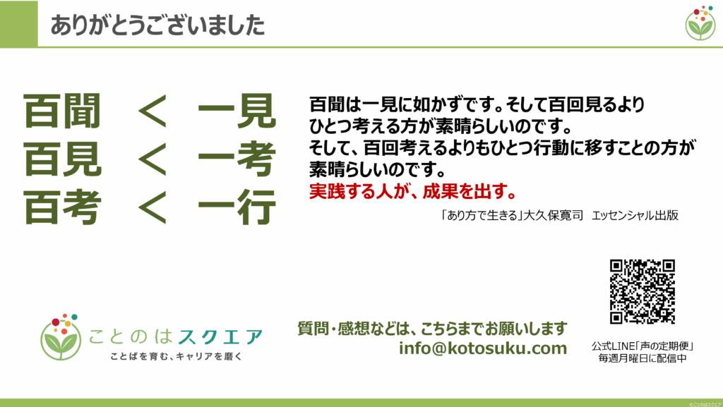 こちらが、定番の最終スライド ↓ ↓ ↓
