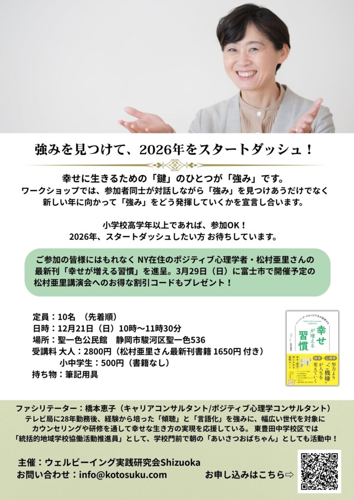 ほんのご近所で、急きょ、開催することになりました。松村亜里さんの最新刊プレゼント付き「強み講座」です。ご連絡お待ちしています。https://forms.gle/WbVgBxNsWzoeDKAs9
